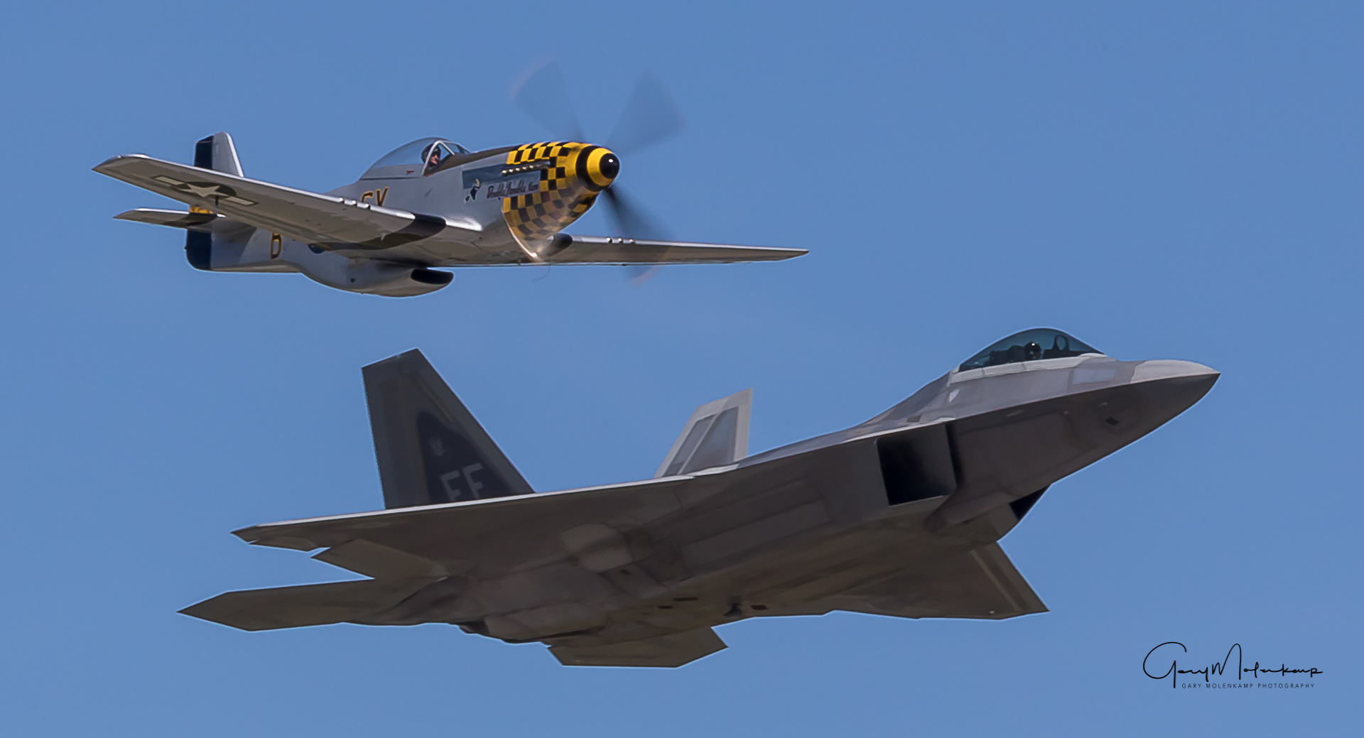 F-22 Raptor, P-51 Mustang Heritage flight