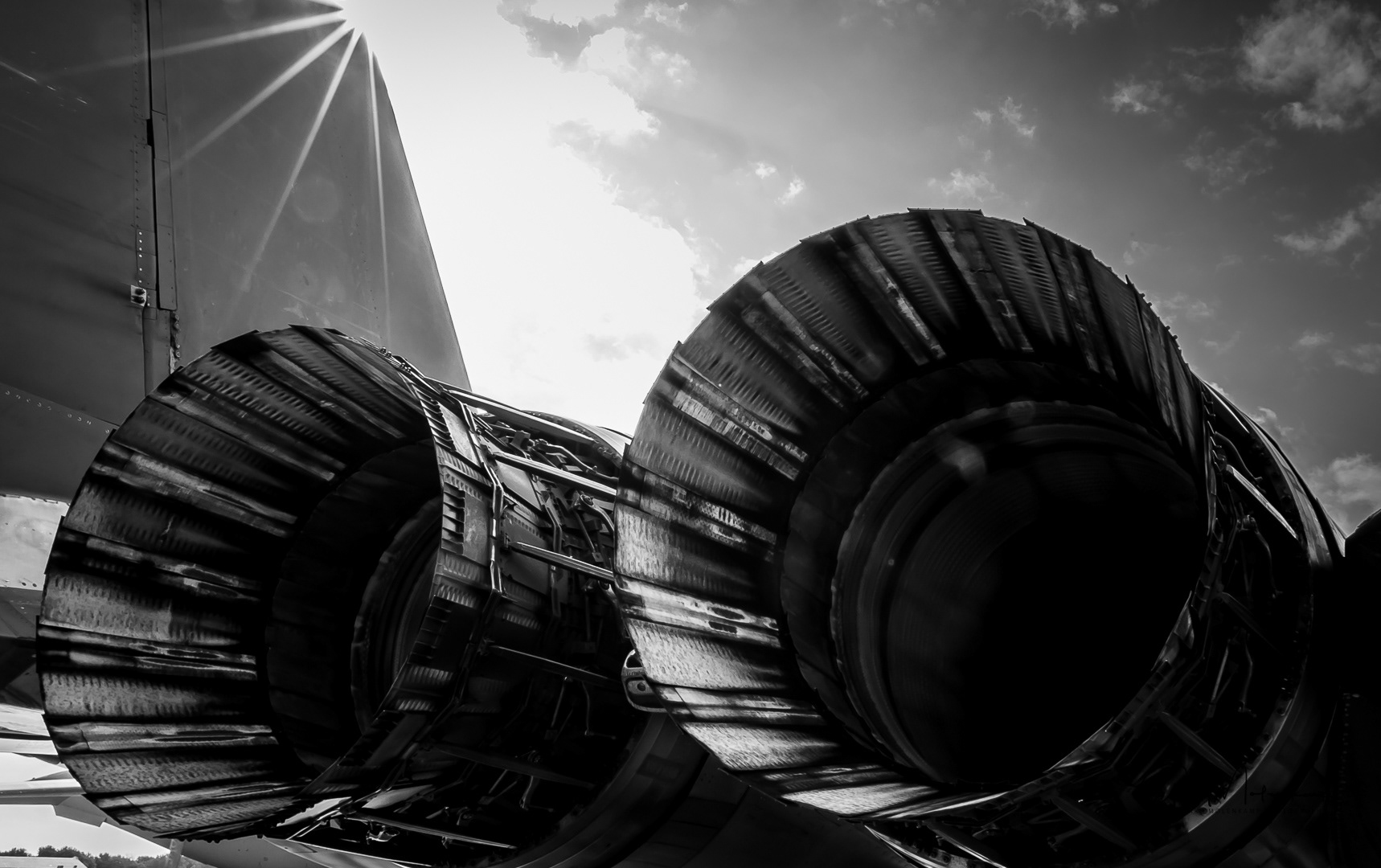 The twin engines of an F-15E
